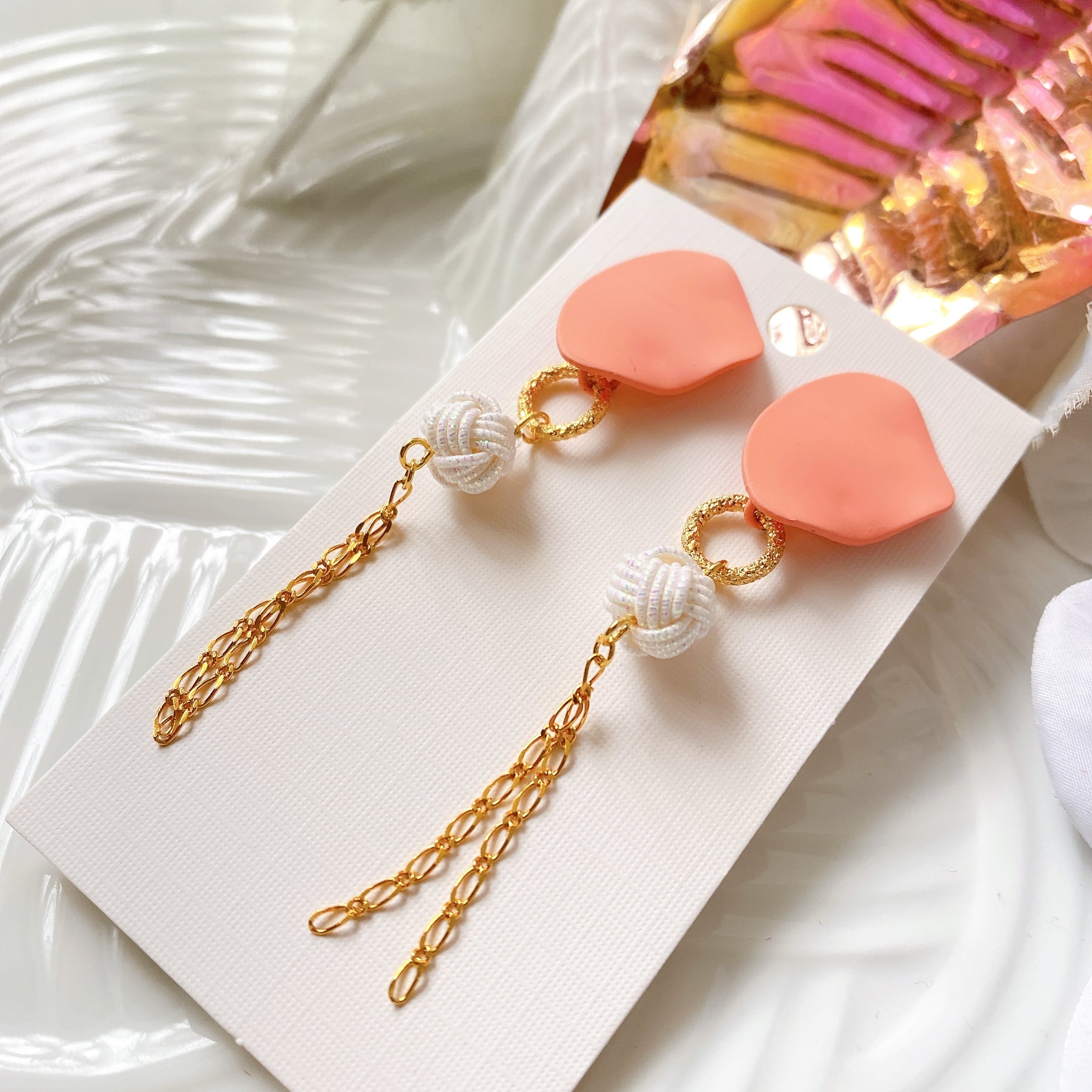 NEW【水引ピアス】URBAN GIRL SERIES◇都会の女◇サーモンピンク&ホワイト◇SALMON PINK&WHITE